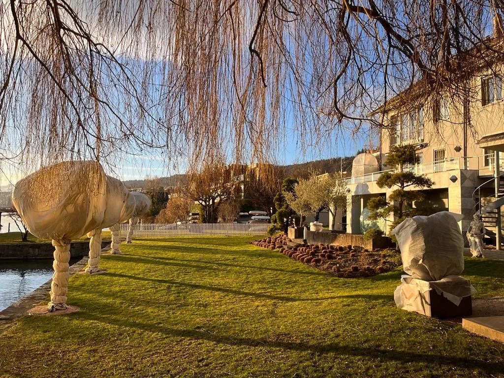 Zur Liegenschaft gehört ein Bootshaus mit elektrischem Bootsaufzug und ein Beach House und ein grosszügiger, südländisch bepflanzter Garten und direkte Seezugang. Zusätzliche Bootsplätze, 2 Garagen und 4 Autoabstellplätze.